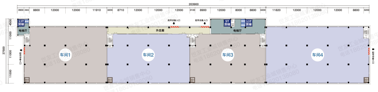 2#楼首层高至10米,原地面不限承重;楼上高至8米,承重1.5吨,为重型工业企业提供了理想的选择。
